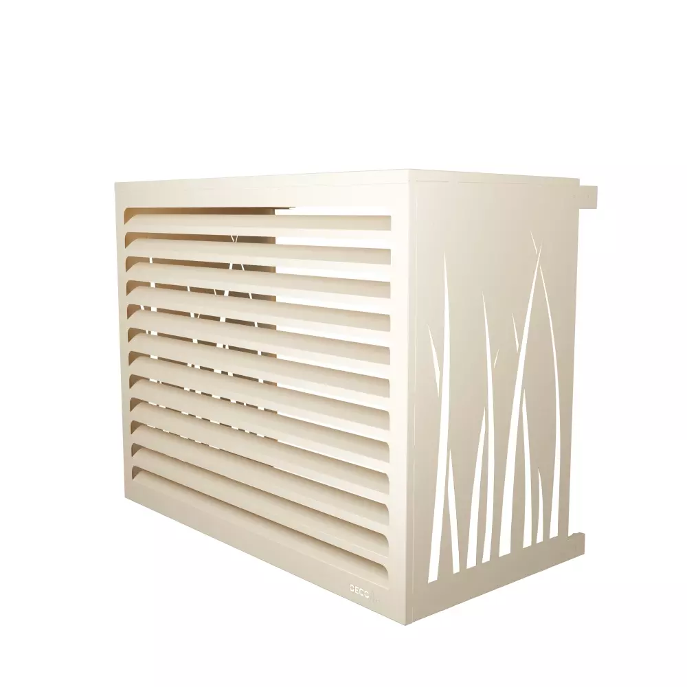 Le cache clim ivoire clair RAL 1015 taille M DECOAirco permet d’intégrer harmonieusement une unité extérieure de climatisation ou de pompe à chaleur de plus grande dimension dans votre environnement extérieur.