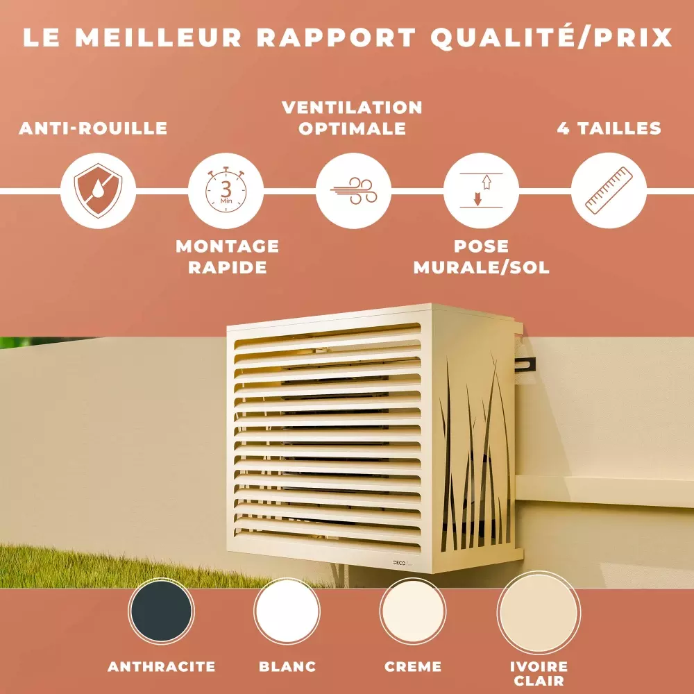Conçu en acier galvanisé, ce cache clim en métal offre une solution extérieure pas chère, robuste et design, pensée pour durer.