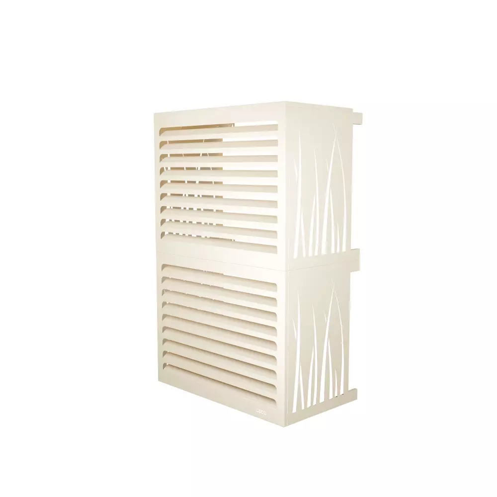 Le cache pompe à chaleur double superposé ivoire clair est conçu en acier galvanisé anti-rouille, avec une peinture thermolaquée résistante aux UV et aux intempéries.